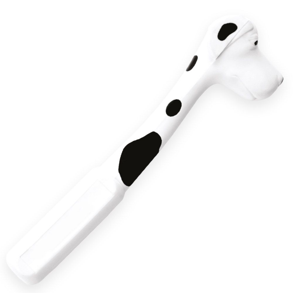Descrição Fabricado em material atóxico, possui forma anatômica própria com a figura decorativa de um cão dálmata em uma das pontas.